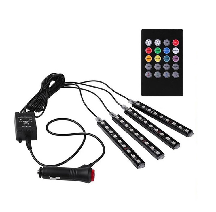 ولتاژ:۱۲ ولت - 8 رنگ مختلف .طول هر الایدی ۱۲ سانتیمتر - قابل نصب در زیر داشبورد و زیر صندلیهای جلو -دارای سنسور صدا که با شنیدن صدای پخش خودرو باعث ایجاد افکت میشود - دارای فندکی جهت اتصال برق خودرو به محصول - دارای ریموت کنترل جهت تغییر رنگهای LED RGB و تغیر افکتها